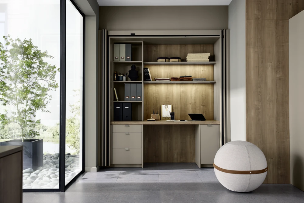 Que vous soyez en télétravail ou en quête d’un coin de créativité, Clément Péraud et son équipe vous conseilleront dans la conception d’un espace de travail à domicile, propice à l’éfficacité et à la sérénité. Inscrit dans un renfoncement de l’espace, le bureau-alcôve s’invite dans nos intérieurs. Fournisseur NARDIINTERNI©
