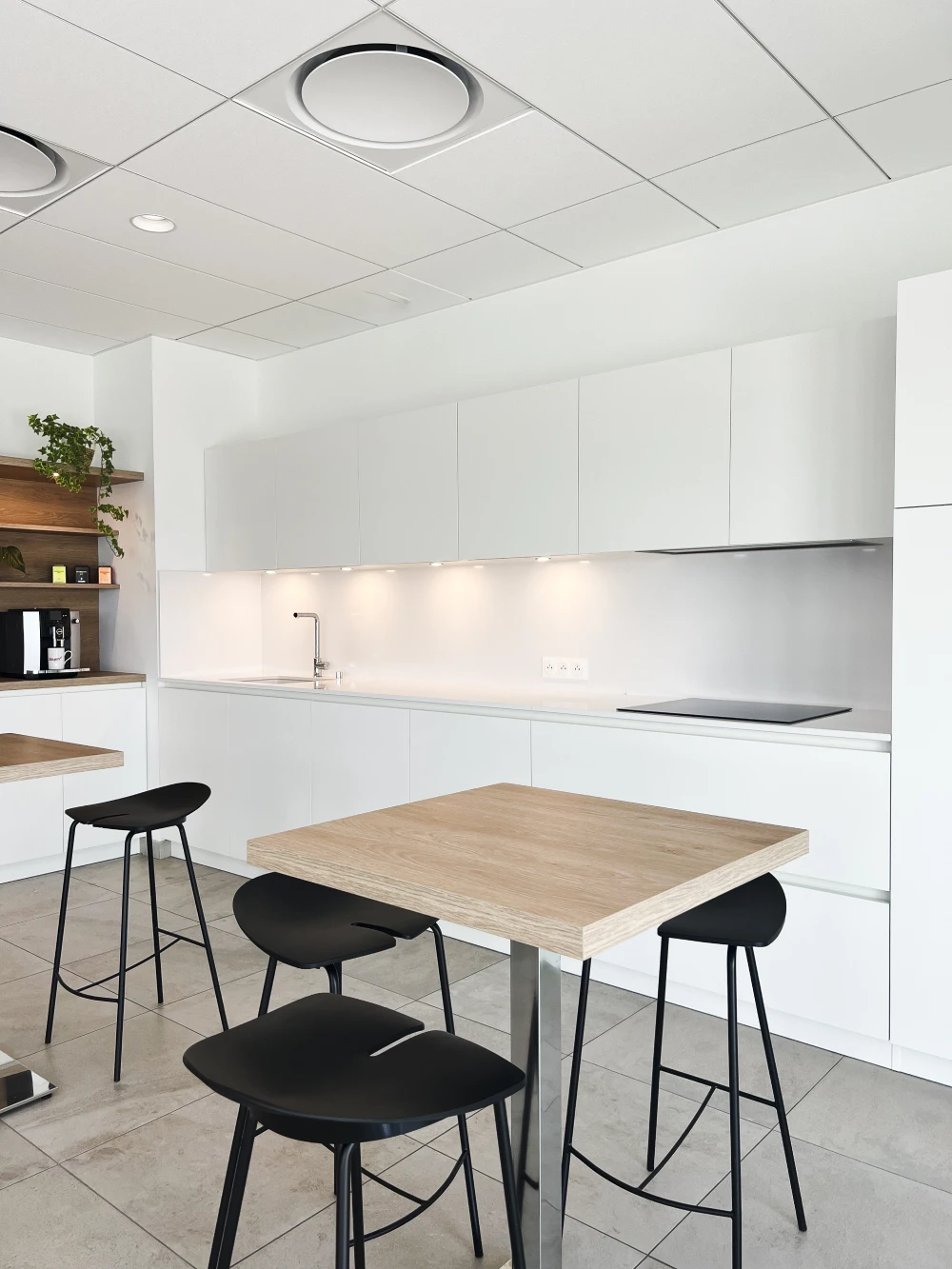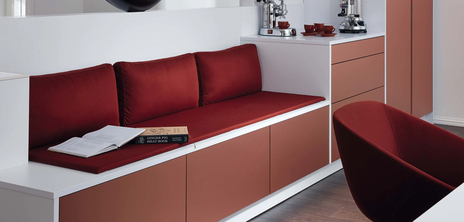 L’application de la cuisine domestique en milieu d’entreprise est intéressante pour imaginer des aménagements d’espaces chaleureux, « comme à la maison », propices aux échanges entre collègues ou co-workers. Fournisseur NARDIINTERNI©