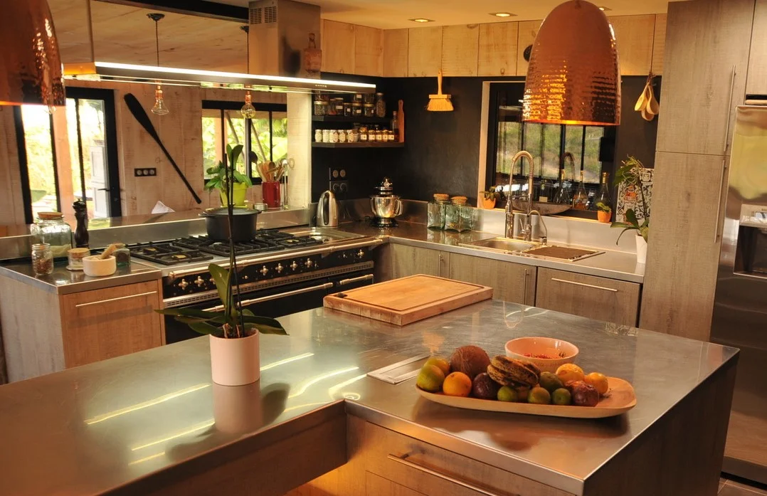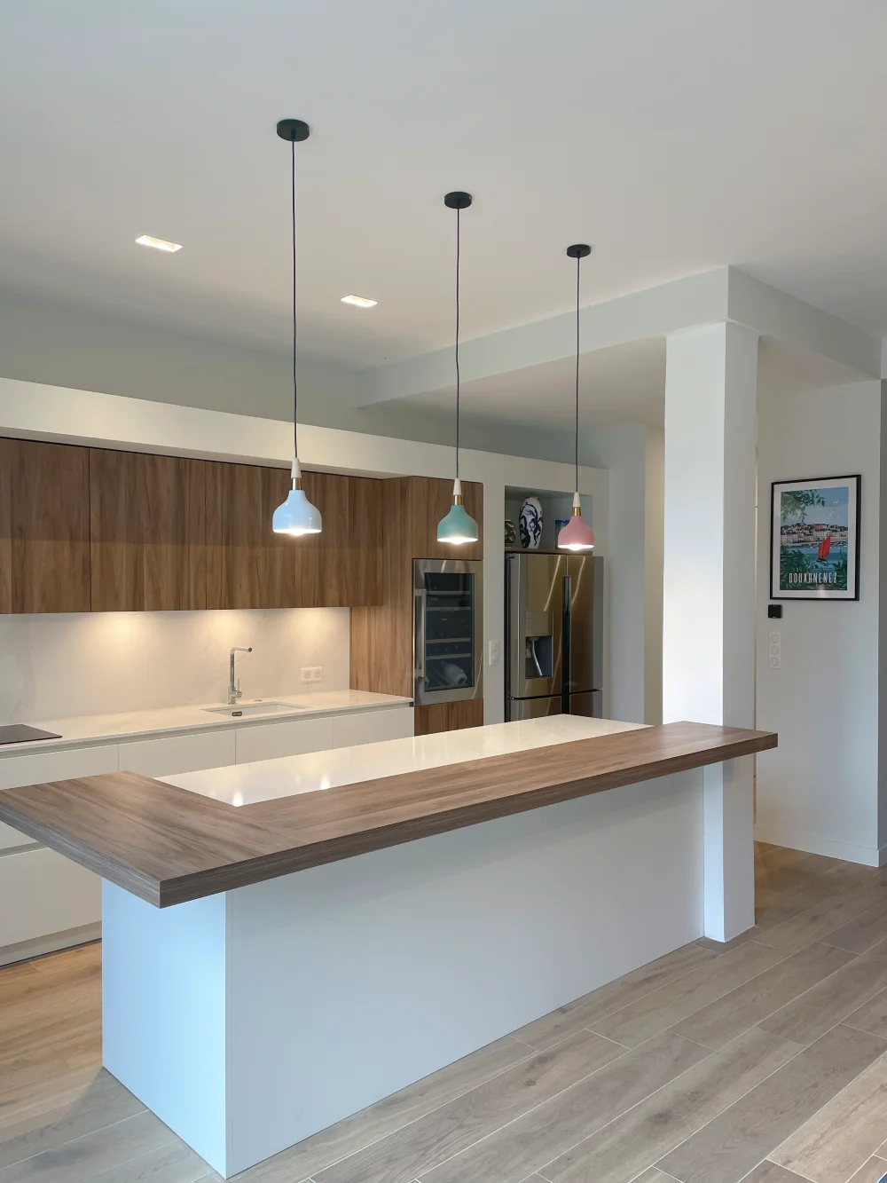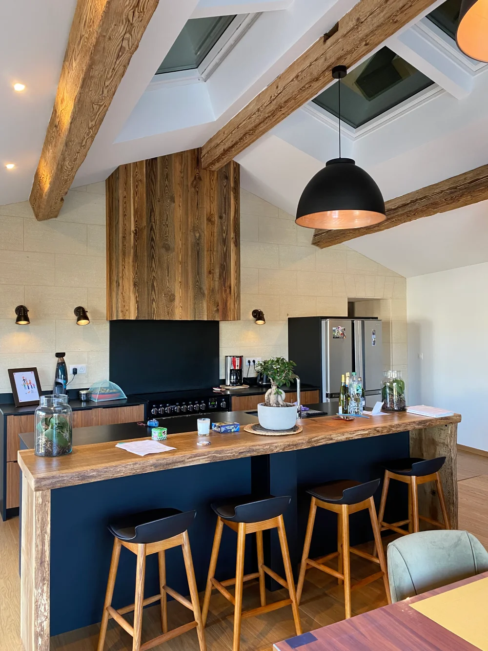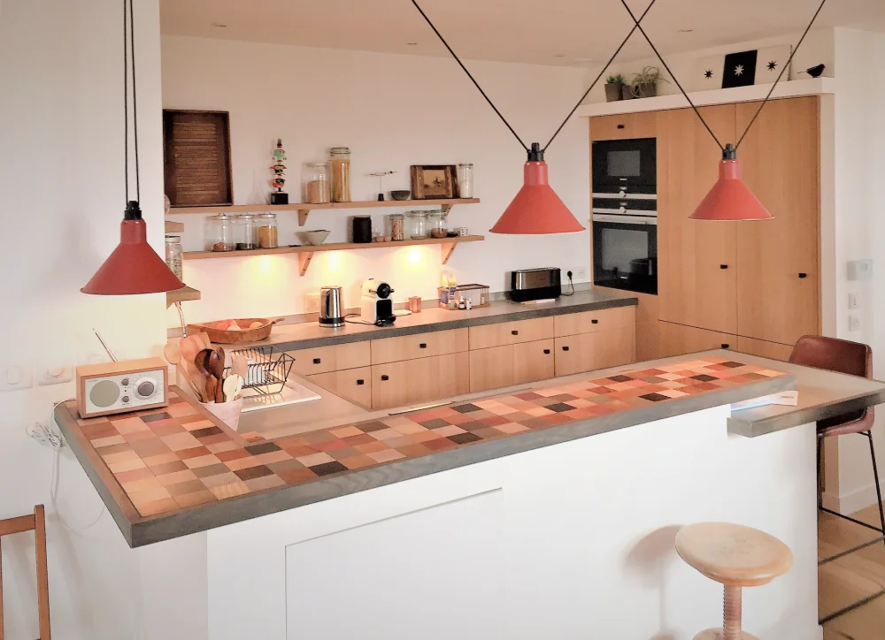 Plan de travail bois chêne lamellé. Fabrication : Natural Design