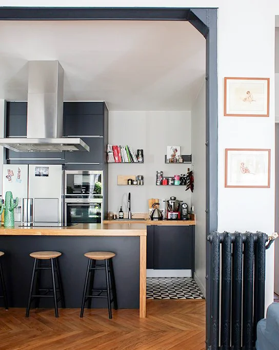 Plan de travail granite noir Zimbabwe crédence Silestone© Et-Marquina. Pose : Granico 33