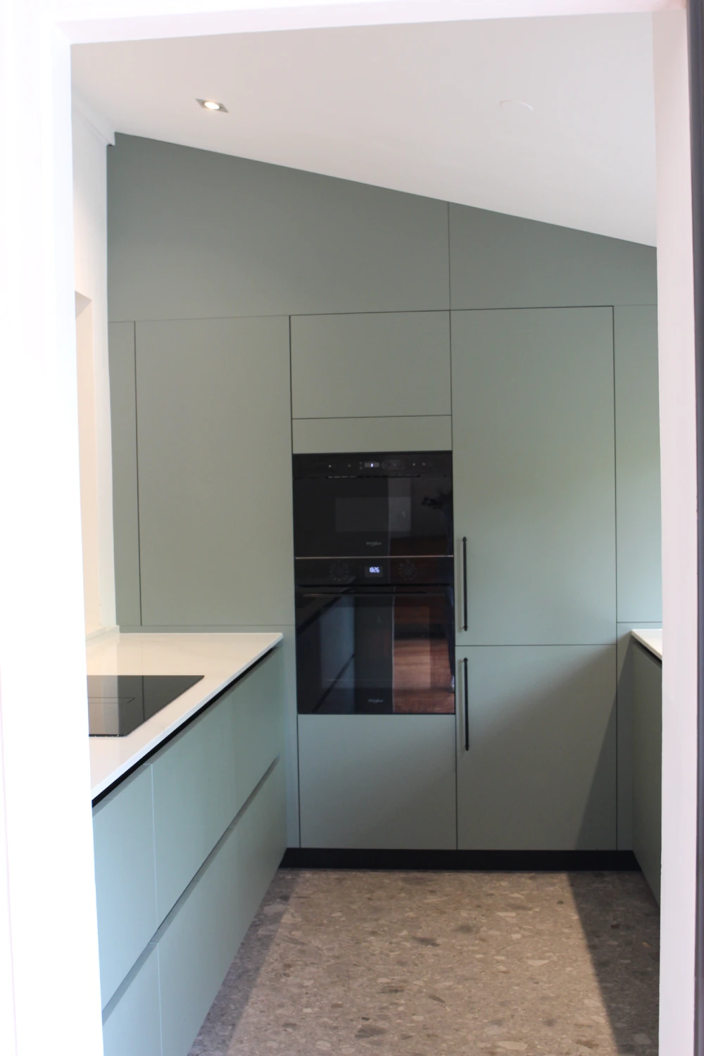 Les façades de cuisine sont bien plus qu’un simple élément esthétique ; elles définissent le caractère de l’espace et contribuent à créer une ambiance unique. Nous travaillons avec des fournisseurs premium comme ARMONY© ou BERCKERMANN© pour proposer des solutions techniques fiables pour les rangements et les tiroirs, et également une vaste sélection de matériaux, de finitions et de couleurs pour laisser s’exprimer le goût des clients : laques mates, brillantes ou gaufrées, bois naturel, bois cannelé, façades « cadre » de type japonais, façades FENIX©, stratifiées, en grès ou en métaux raffinés… Chaque façade est conçue avec un souci du détail et une qualité exceptionnelle, garantissant durabilité et facilité d’entretien.