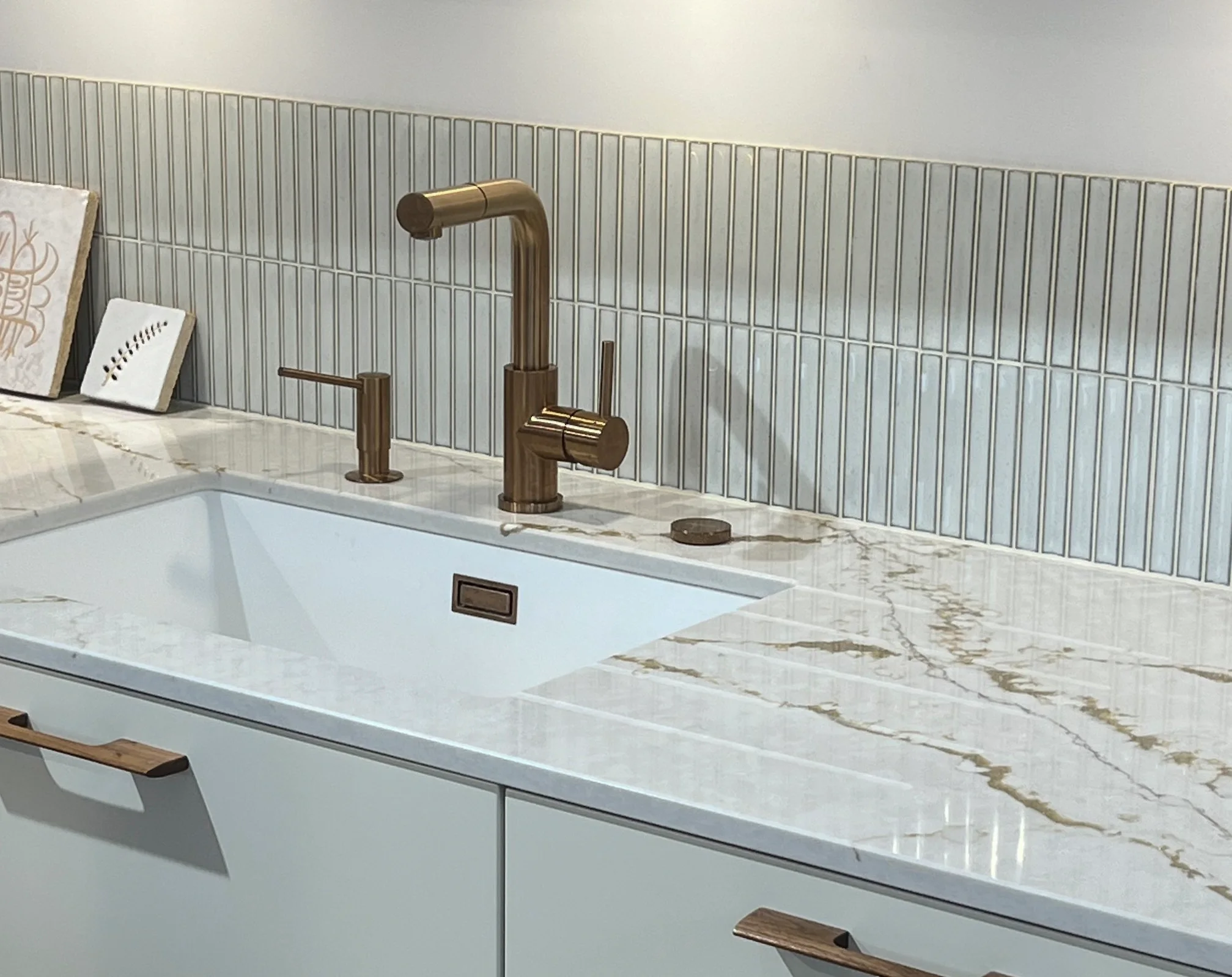 Le plan de travail joue un rôle essentiel tant sur le plan fonctionnel qu’esthétique. Notre équipe s’appuie sur des fournisseurs premium pour proposer une vaste sélection de matériaux haut de gamme, allant de la céramique DEKTON© à la pierre naturelle Granit, Quartzite SENSA© ou reconstituée SILESTONE©, en passant par la résine de synthèse CORIAN© et d’autres matériaux tels que le bois ou l’inox… Chaque matériau présente des caractéristiques uniques, du point de vue de la durabilité ou de la praticité (résistance à la chaleur, facilité d’entretien, qualité anti-bactérienne et fonctionnalité). C’est là que l’expertise de Clément Péraud vous aiguillera dans vos choix.