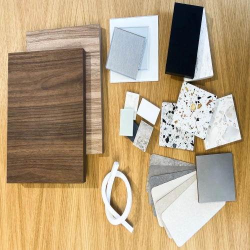 Bois, Inox, Terrazzo, Verre trempé, Béton teinté, Stratifié